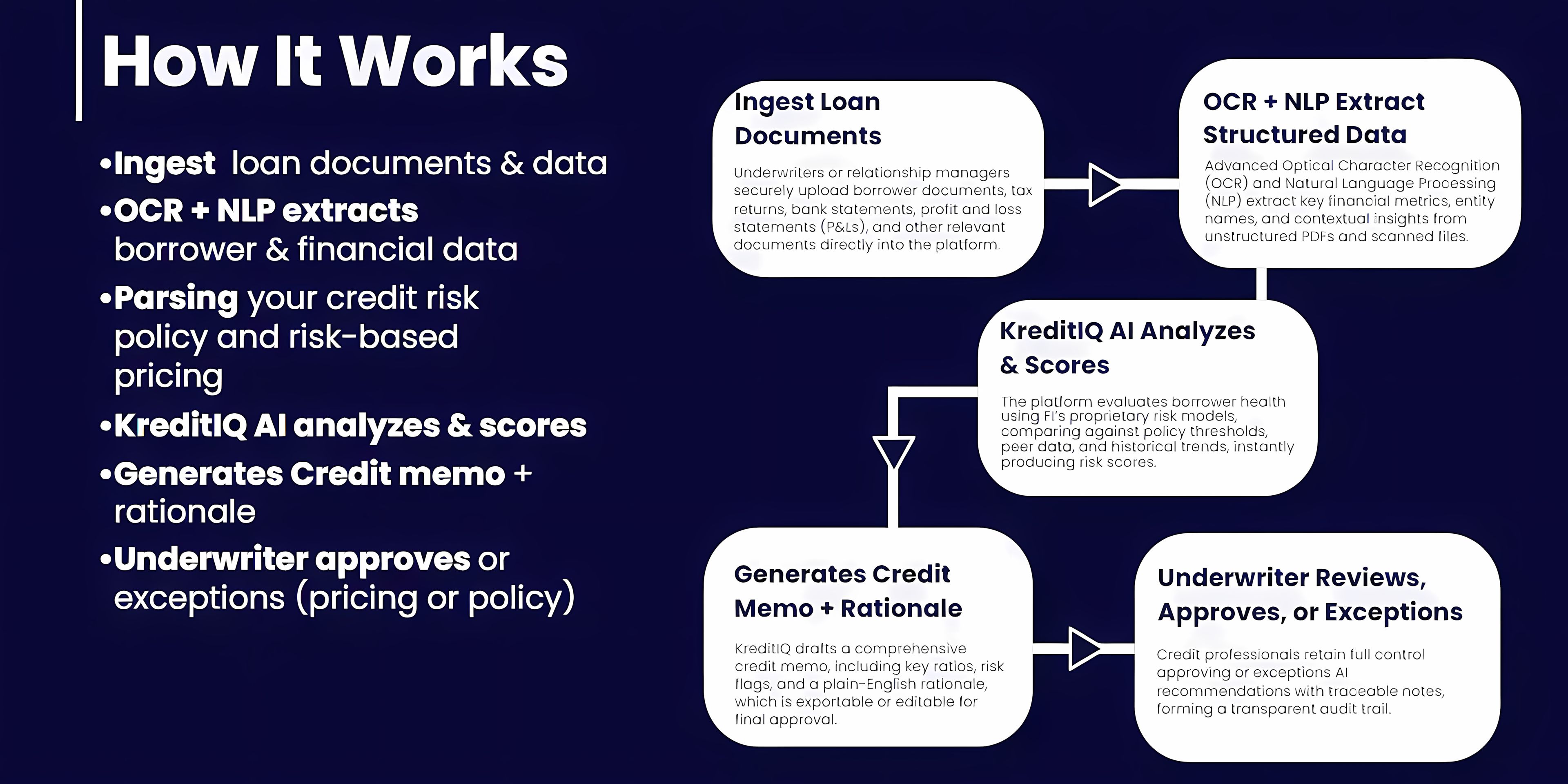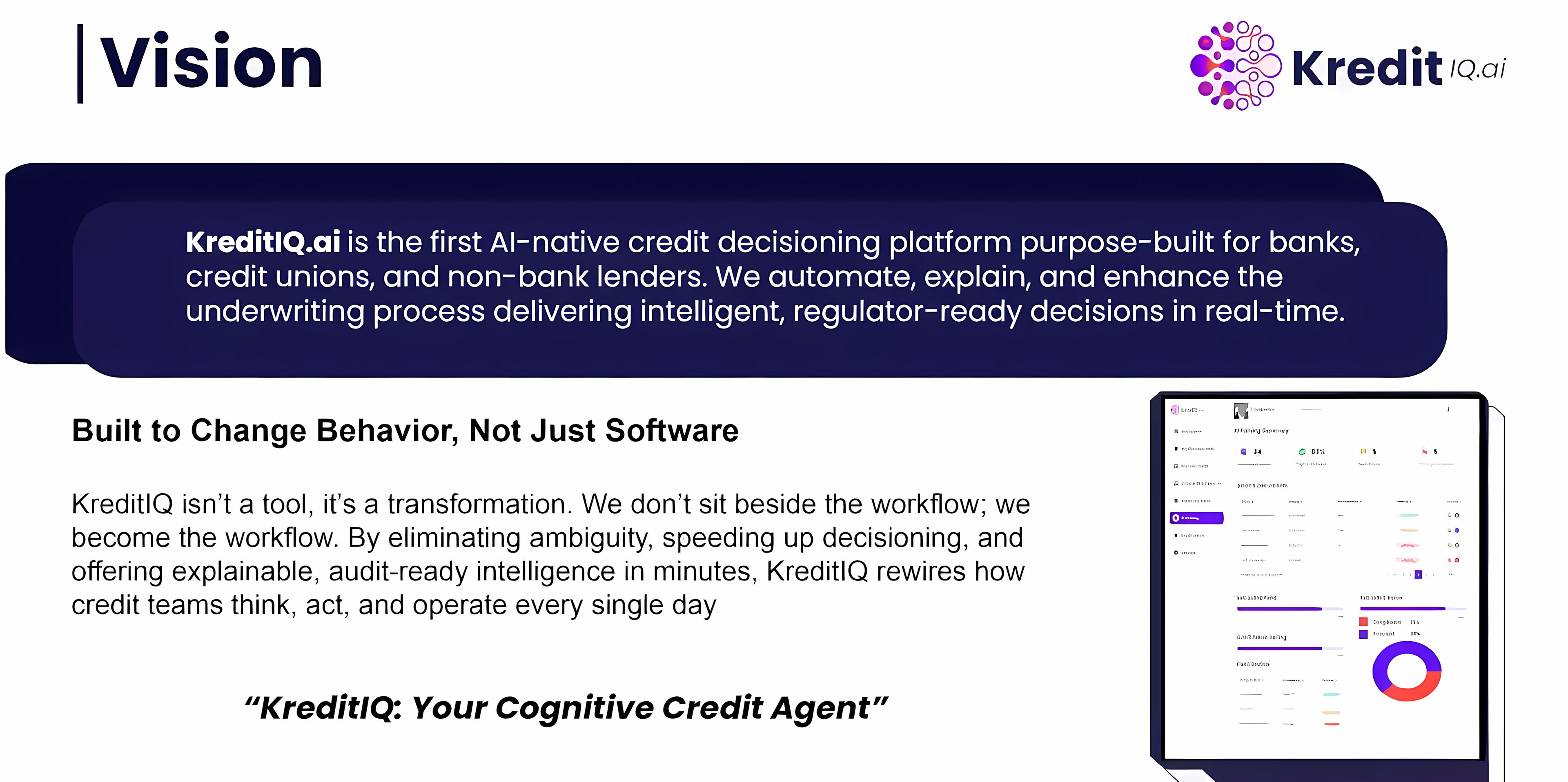 Welcome to the Future of Underwriting KreditIQ is the first AI-native credit decisioning platform built for modern lenders. We don’t sit beside your workflow—we become it. Speed, clarity, and compliance—at the core of every decision.